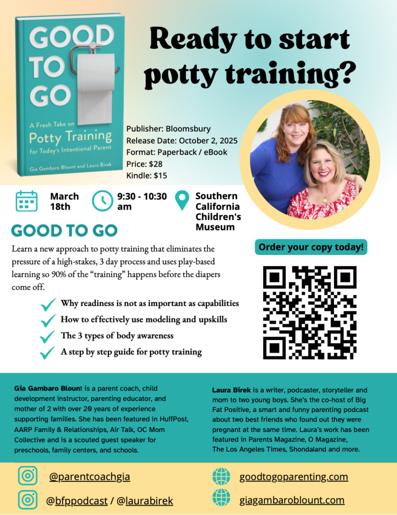 This is a free workshop for parents and caretakers that explores the Potty Training Method in Gia Gambaro Blout and Laura Birek’s book Good To Go. They will bring in example floor potties, children’s books, a miss kit, and more for a fun, hands-on experience.